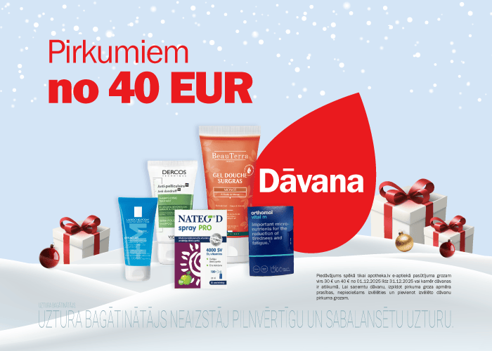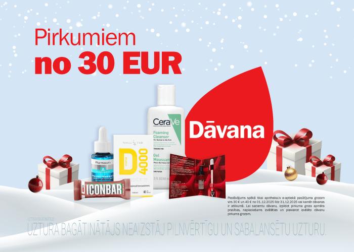 Decembrī, iepērkoties apotheka.lv e-aptiekā vismaz 30 vai 40 EUR vērtībā, saņem kādu no 21 vērtīgām dāvanām.