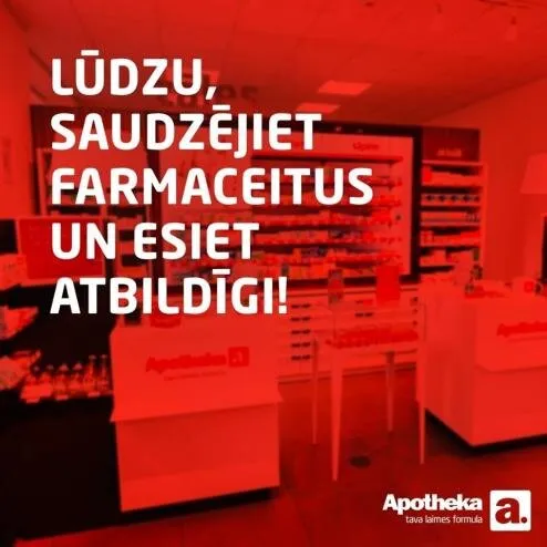 - Esot aptiekā, nedrūzmējieties kases zonā, ievērojiet 2 metru distanci no kases un citiem apmeklētājiem. Ja aptiekā ir daudz cilvēku un 2 metru distanci nav iespējams ievērot, lūdzu, uzgaidiet ārpus aptiekas.